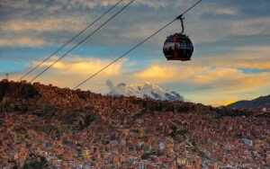 Continuation vers la ruelle des guérisseurs andins ou la rue Sagarnaga, le marché des artisans, San Francisco. Découverte des plus beaux points de vue à partir 4100m sur la ville de La Paz, incroyablement installée dans la « saignée » que forme le río Choqueyapu dans l’Altiplano, avec en toile de fond les Géants de la Cordillère Royale : Mururata et Illimani.