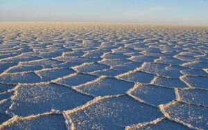 En route, visite d’une exploitation familiale de sel à Colchani, continuation vers le bord du Désert, 12000 km2 de sel brillant sous le soleil des Andes. Premières photos des petites pyramides de sel et traversée du Salar vers l’ancien Hotel de Sal Playa Blanca, hôtel de sel (fermé depuis 2001). Temps libre pour prendre des photos.