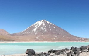 Départ en début de journée en 4×4 privé avec votre guide francophone privé pour la traversée du petit salar de Chiguana, découverte de la route des volcans avec la fumarolle de l’Ollague sur l’horizon et celui de Tomasamil.