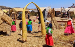 A partir de 07h15, accompagnés de votre guide francophone privé, départ de votre hôtel en véhicule partagé pour le port. Embarquement puis après 30 minutes de navigation, premier arrêt pour la visite des iles flottantes Uros. Elles furent créées au XIII siècle par les Uros pour échapper aux Incas.
